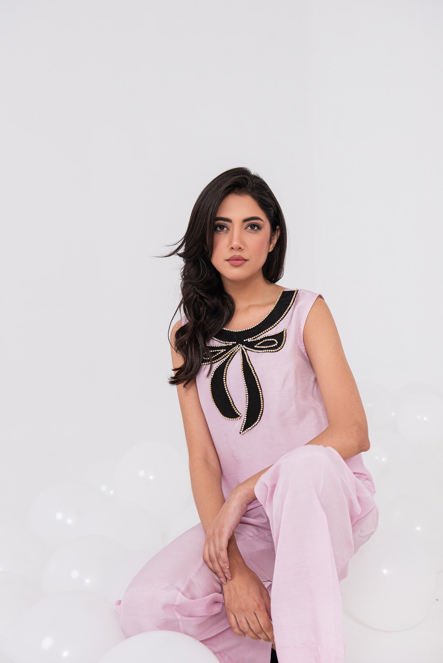 Introducing "Lilac Bow," a dress that harmoniously combines delicate femininity with Swarovski sophistication. This enchanting garment features an intricately detailed neckline adorned with the luminous brilliance of Swarovski crystals, complemented by a charming lilac bow, creating a captivating ensemble.