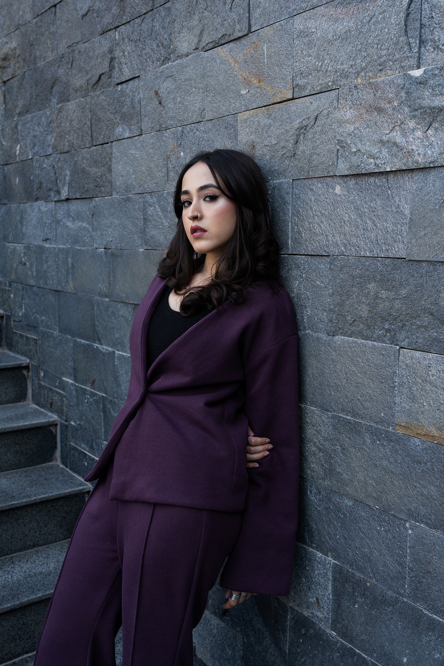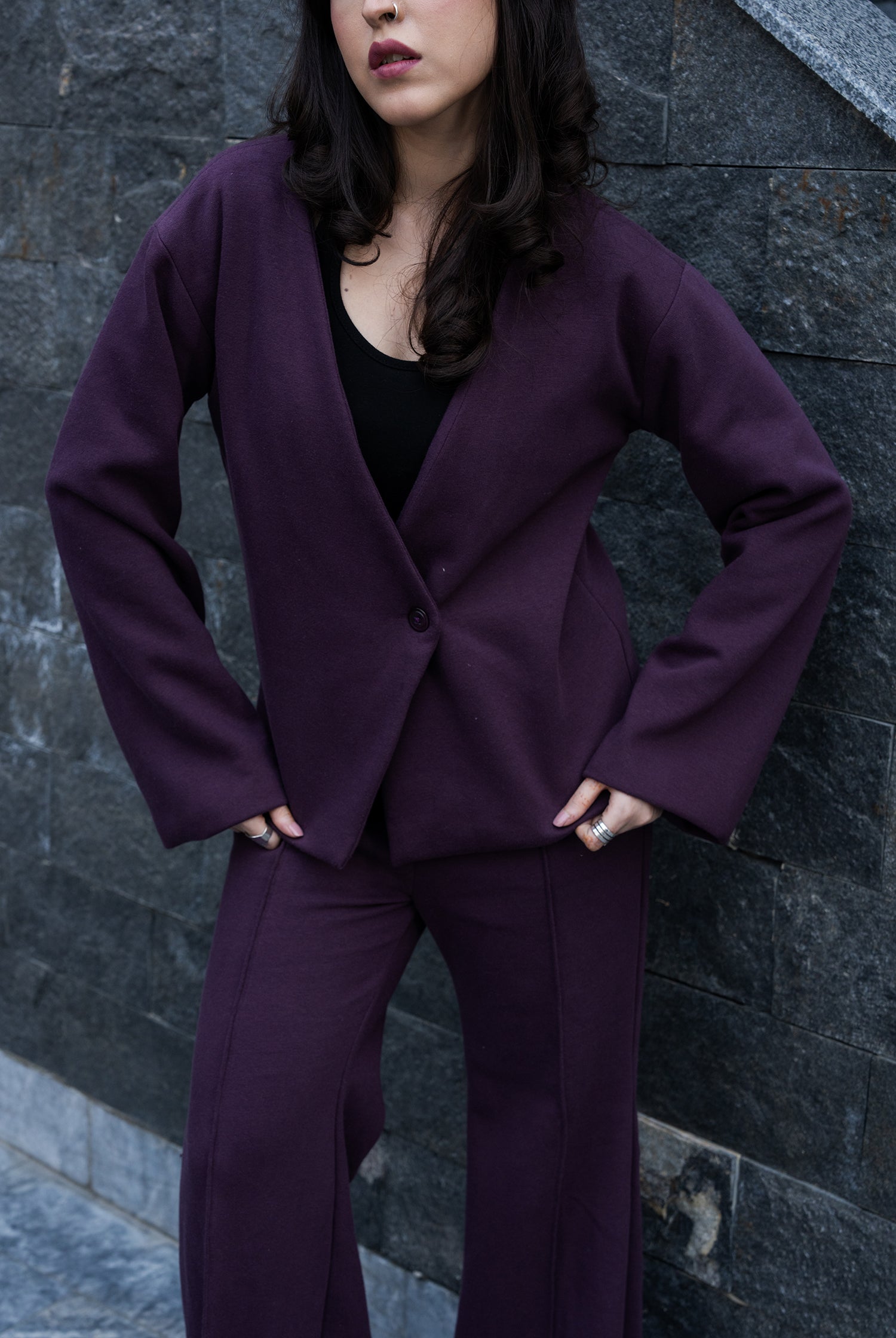 Wrap yourself in warmth and style—lined fleece blazer with structured suiting details for effortless winter chic.